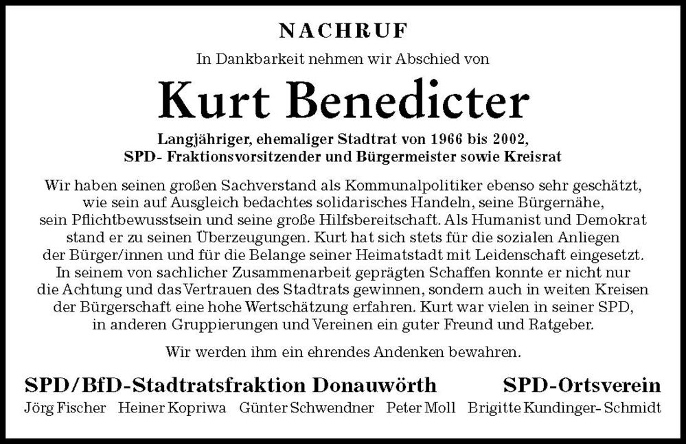 Nachruf für Kurt Benedicter
